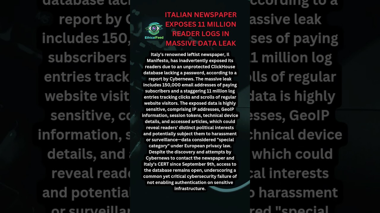 Italy’s famed leftist newspaper, Il Manifesto, is reeling from a massive security failure: an unprotected ClickHouse database was …