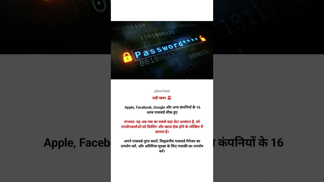 🚨 Apple, Facebook, Google और अन्य कंपनियों के 16 अरब पासवर्ड लीक. #shocking #bigdata #breakingnews
