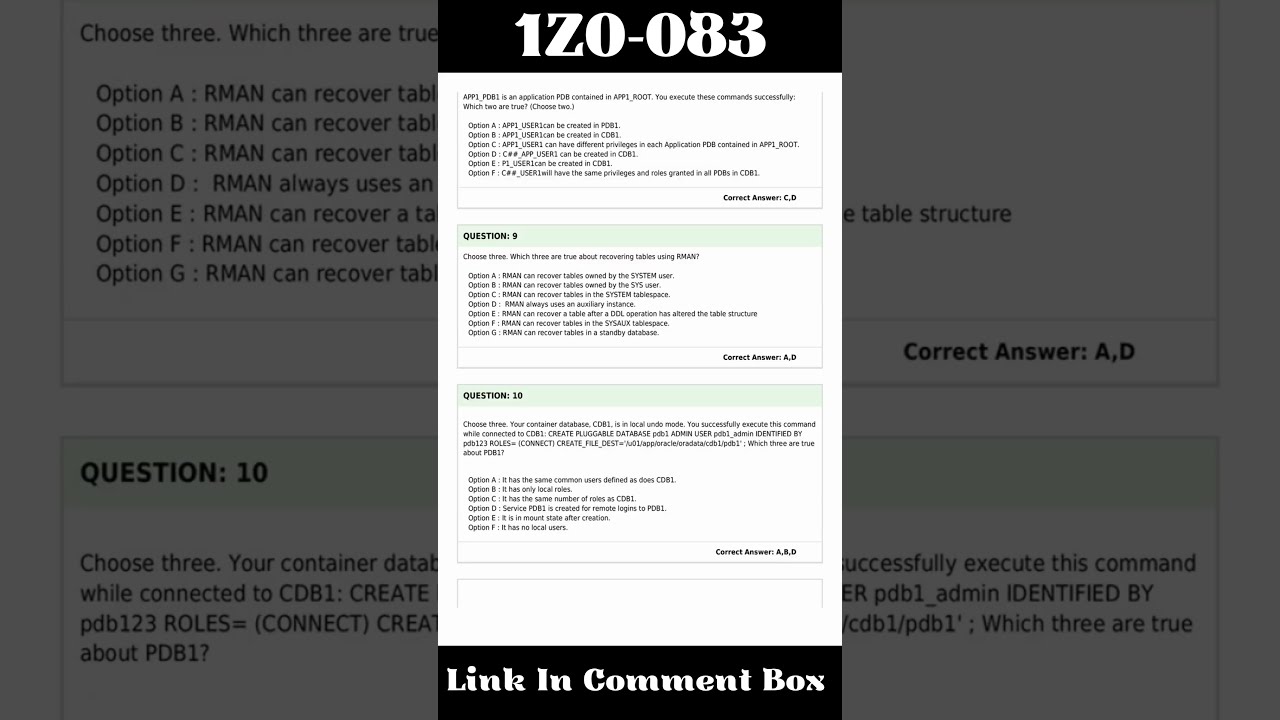 1Z0-083 Exam Questions | Oracle Database Administration II Exam