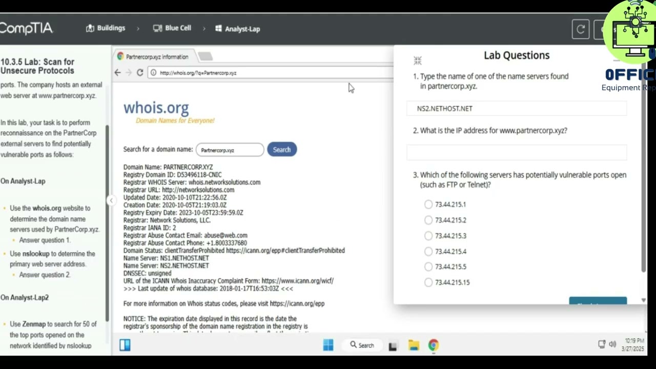 Network+ 10.3.5 Lab Scan for Unsecure Protocols TestOut