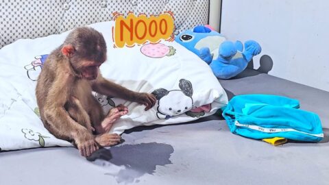 Sleepy Surprise! Monkey SU Funny Shame Over a Little Leak!