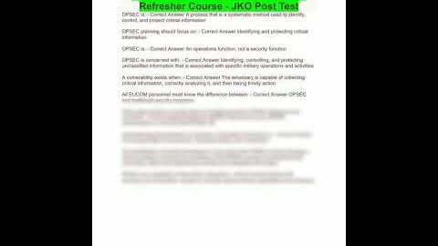 Operations Security OPSEC Annual Refresher Course JKO Post Test106