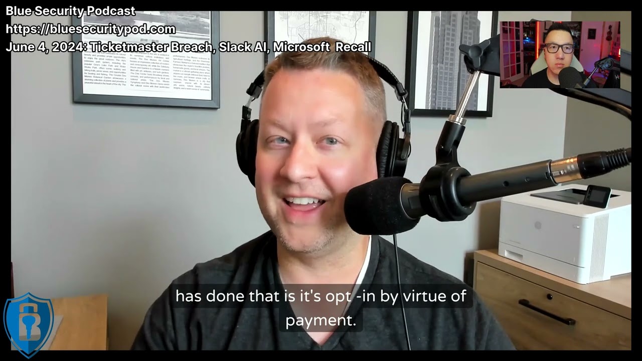 Blue Security Podcast – 2024-06-04 – Ticketmaster Breach, Slack AI, Microsoft Recall