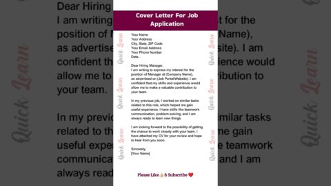 Cover Letter For Job Application | Resume Cover letter #english #resumetips